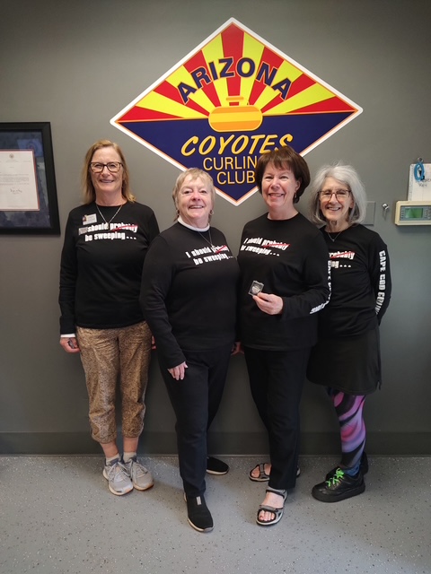 1st Event Winners- Carolyn Mickelson skip Rice Lake CC, Patty Smith Rice Lake CC, Deb Wishner Broomstones CC, Jan Barber Coyotes CC